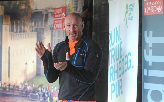 The rugby legend is currently training more than 100 women and men to get in shape for Wales’ biggest half marathon on Sunday 2 October, for the second series of his hit television programme Gareth Thomas: Alfie’s Angels.