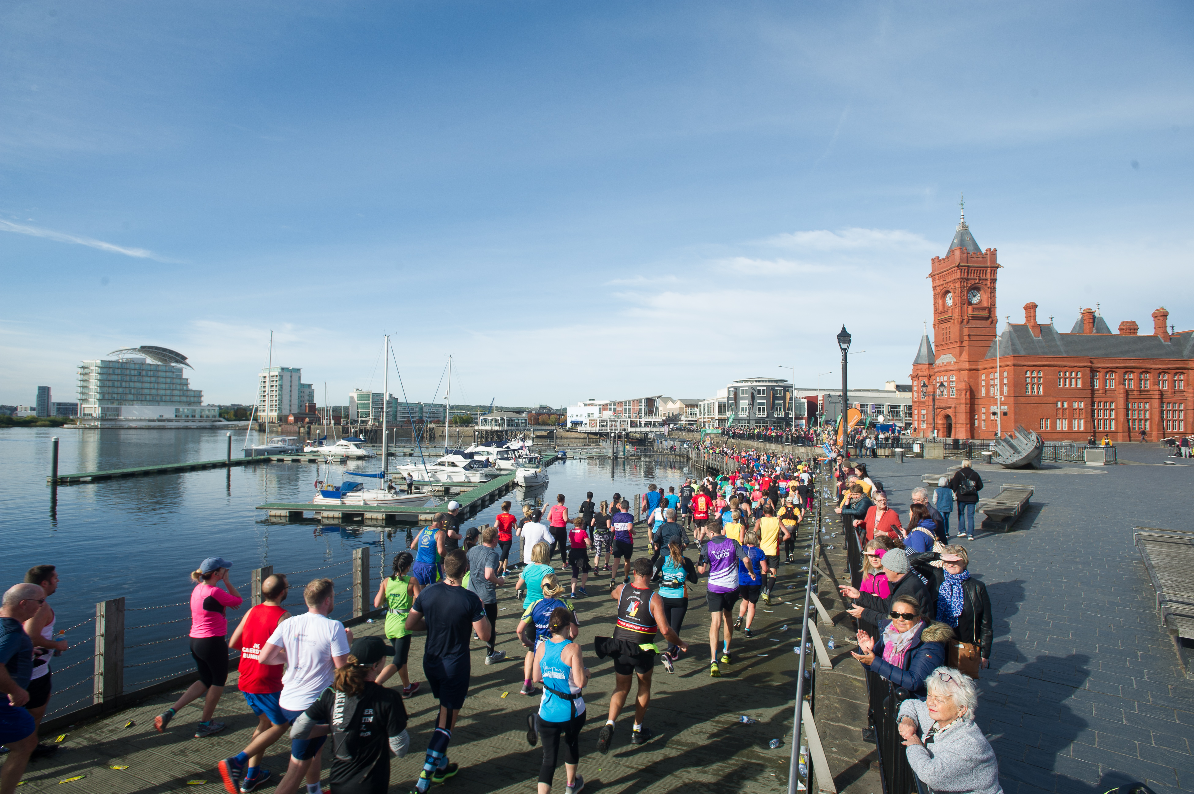 The race starts outside Cardiff Castle and runners then head down past the Principality and Cardiff City Stadiums on the way to Penarth. They take in the glorious Penarth Marina before crossing the barrage and heading to Cardiff Bay. Runners run right through the heart of the bay taking in the Norwegian Church, Senedd and Wales Millennium Centre.
